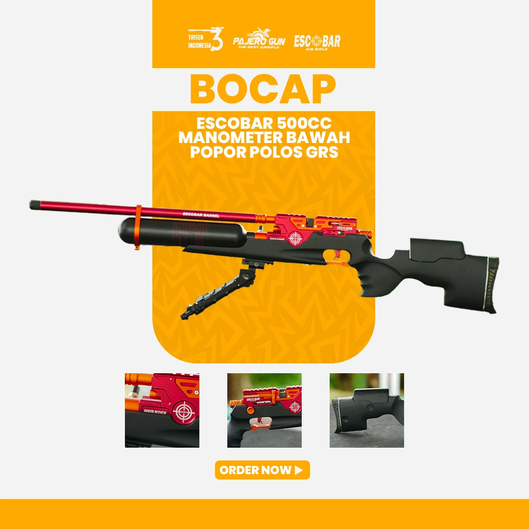 Senapan angin PCP kelas premium dari Escobar Air Rifle dengan model Popor Kayu. Pengerjaan full CNC, dilengkapi setelan power untuk kekuatan maksimal, dan picu yang dilengkapi dengan safety trigger untuk keamanan penggunaan.