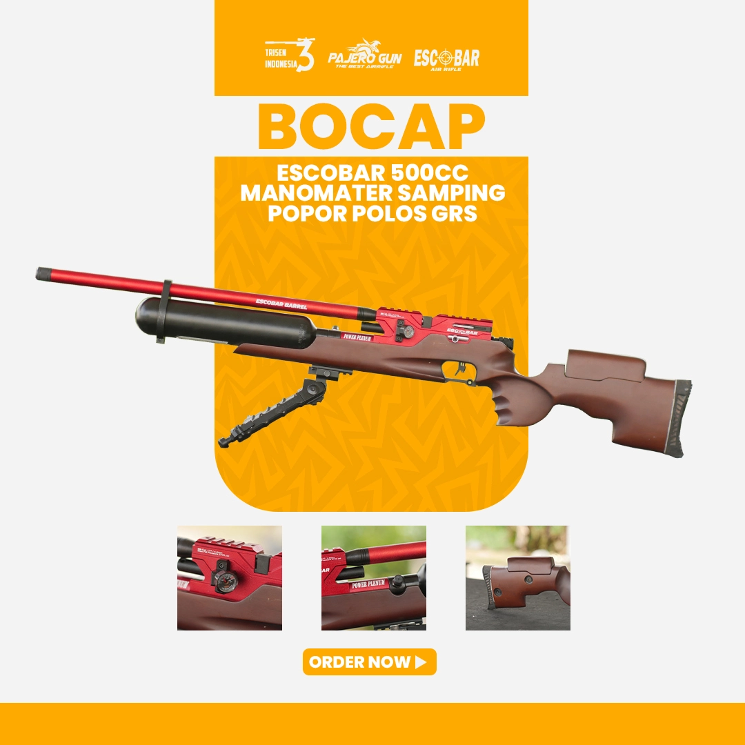 Senapan angin PCP kelas premium dari Escobar Air Rifle dengan model Popor Kayu. Pengerjaan full CNC, dilengkapi setelan power untuk kekuatan maksimal, dan picu yang dilengkapi dengan safety trigger untuk keamanan penggunaan.