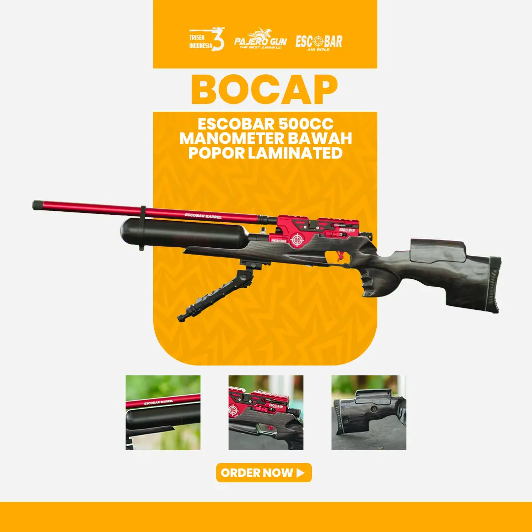 Senapan angin PCP kelas premium dari Escobar Air Rifle dengan model Popor Kayu. Pengerjaan full CNC, dilengkapi setelan power untuk kekuatan maksimal, dan picu yang dilengkapi dengan safety trigger untuk keamanan penggunaan.