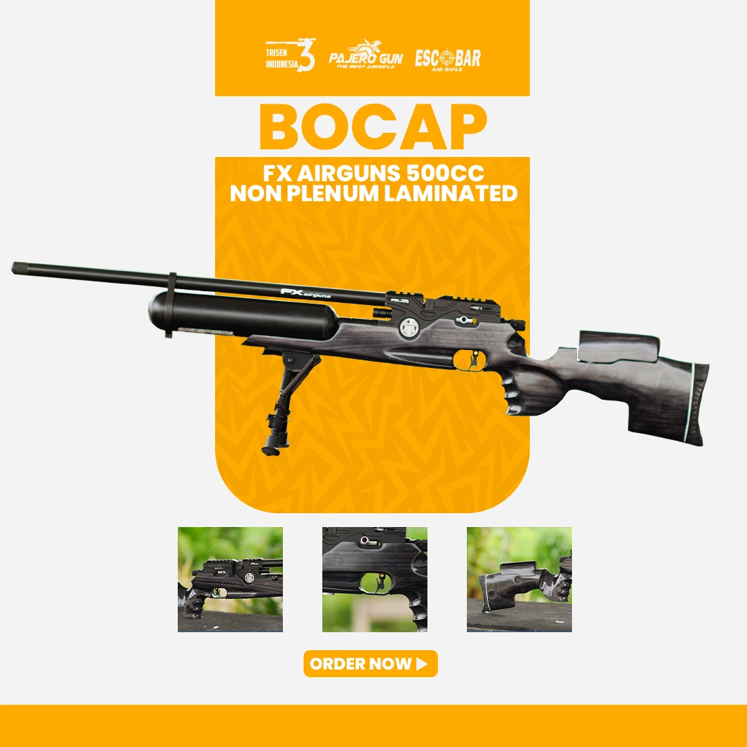 Senapan angin PCP Bocap mini tabung 300cc popor kayu dengan pengerjaan full CNC. Dilengkapi setelan power untuk kekuatan maksimal, dan picu yang dilengkapi dengan safety trigger untuk keamanan penggunaan.