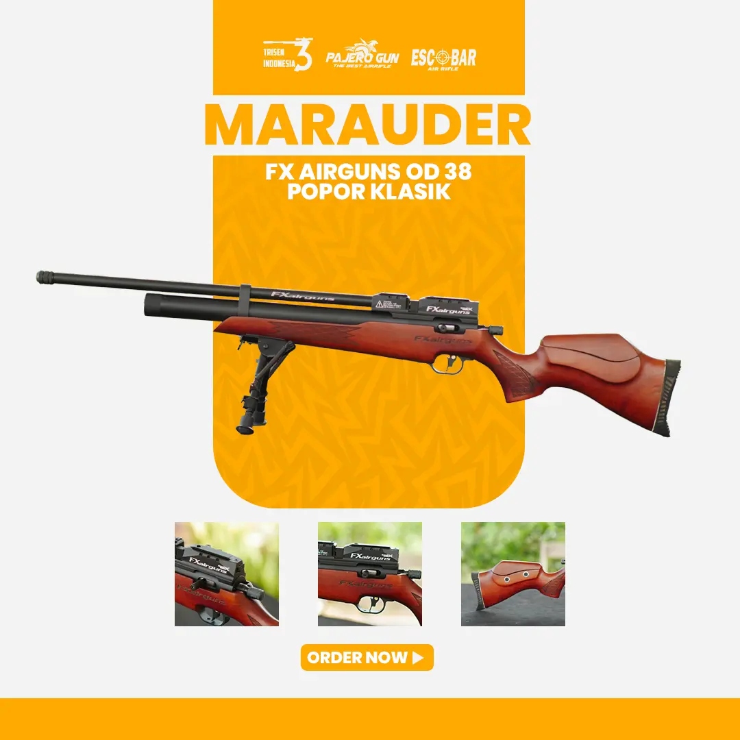 Senapan angin PCP popor kayu full CNC yang sudah dilengkapi dengan setelan pipi di bagian popor, dilengkapi setelan power untuk kekuatan maksimal, dan picu yang dilengkapi dengan safety trigger untuk keamanan penggunaan.